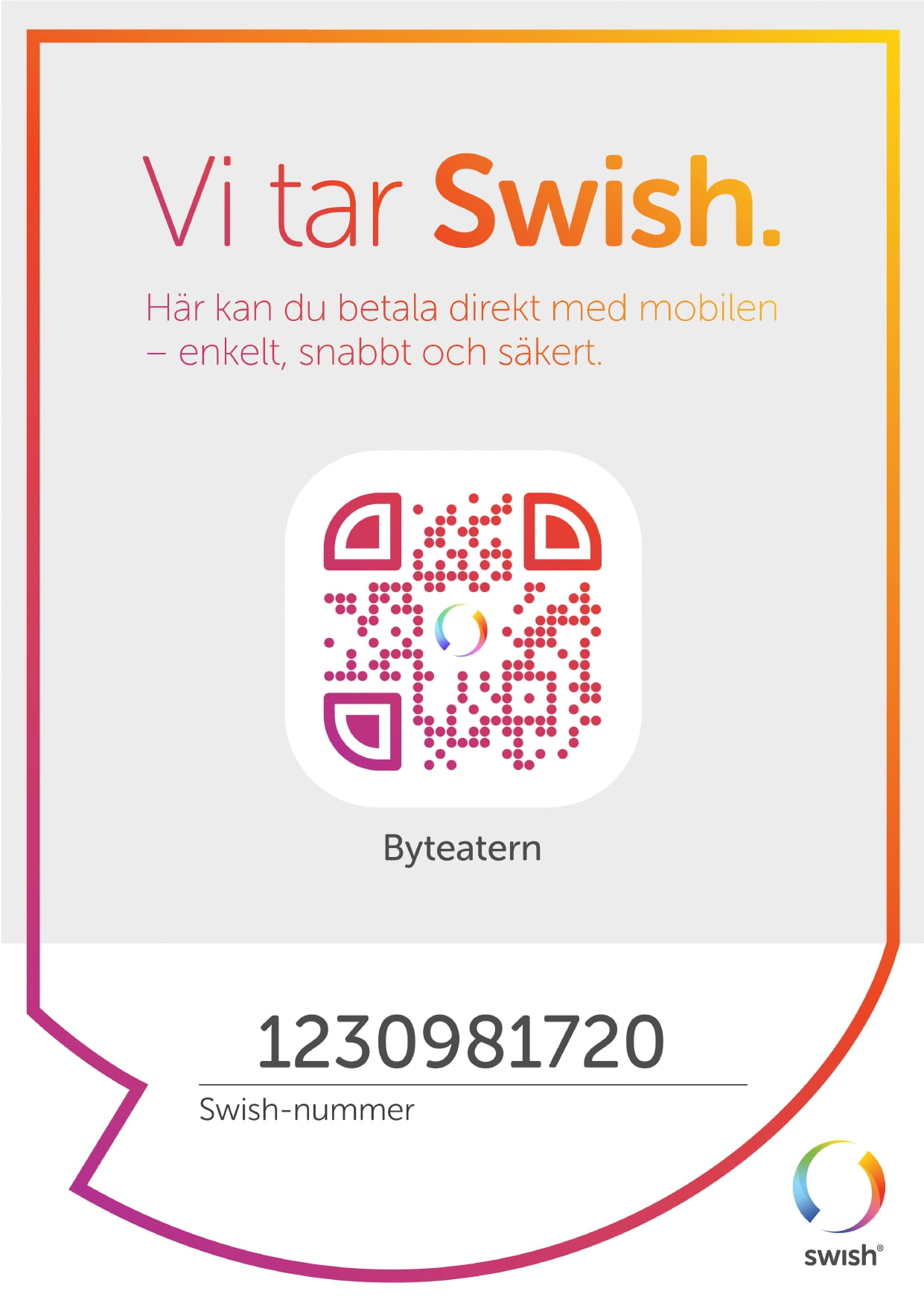 OBS! Om du inte lämnar din mejladress vid inbetalningen måste du mejla oss den till info@byteatern.se